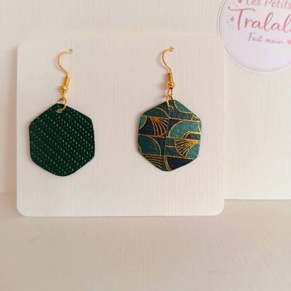 #17 Boucles d'oreilles hexagone graphique - émeraude & doré